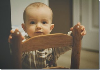 Mom comes to save the day! After a diaper change, I cruise around, play with my pull puppy, and push around my chair while mom picks up. I get quite upset that mom won’t let me play with her camera.